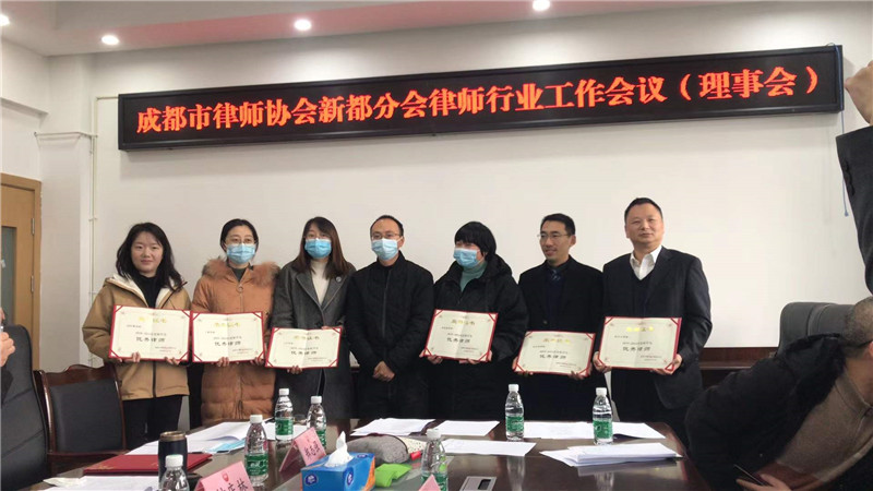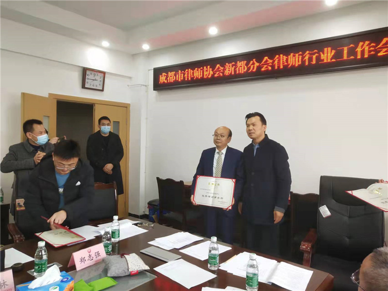 2022年1月19日下午,成都市律师协会新都分会关于表扬2019——2021年度优秀律师事务所、优秀律师、优秀青年律师表彰大会在新都司法局四楼会议室举行。